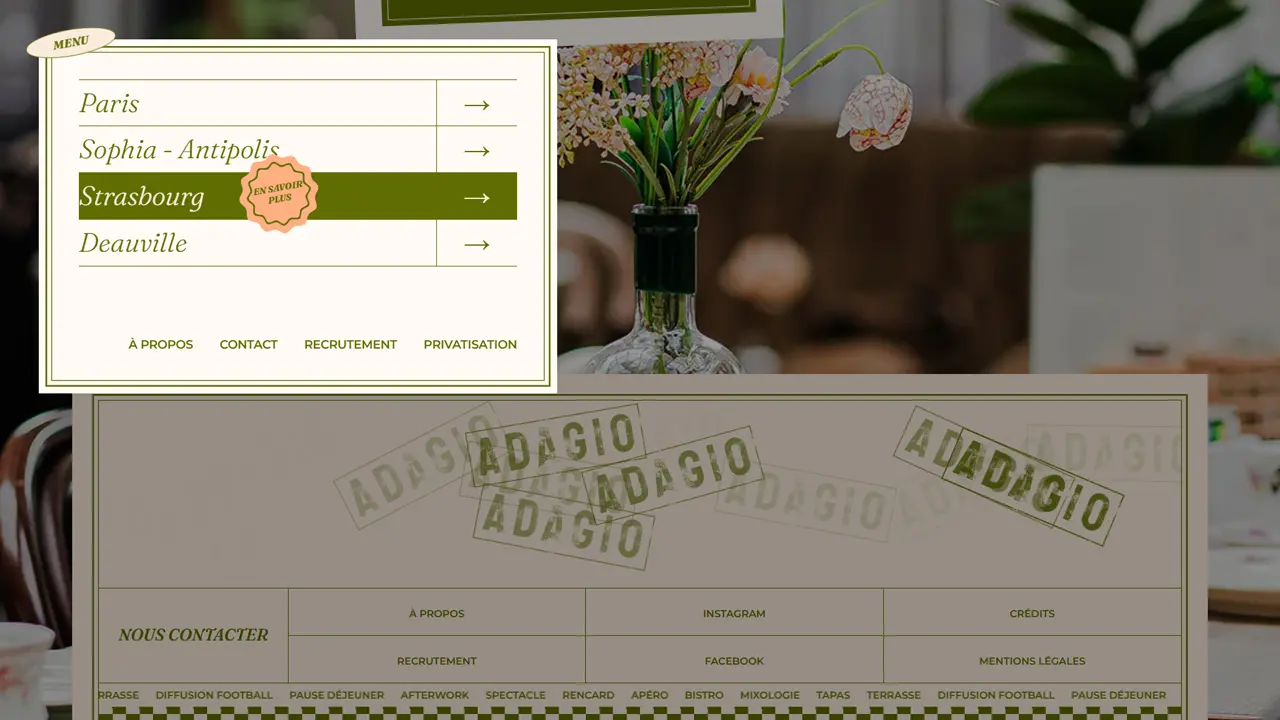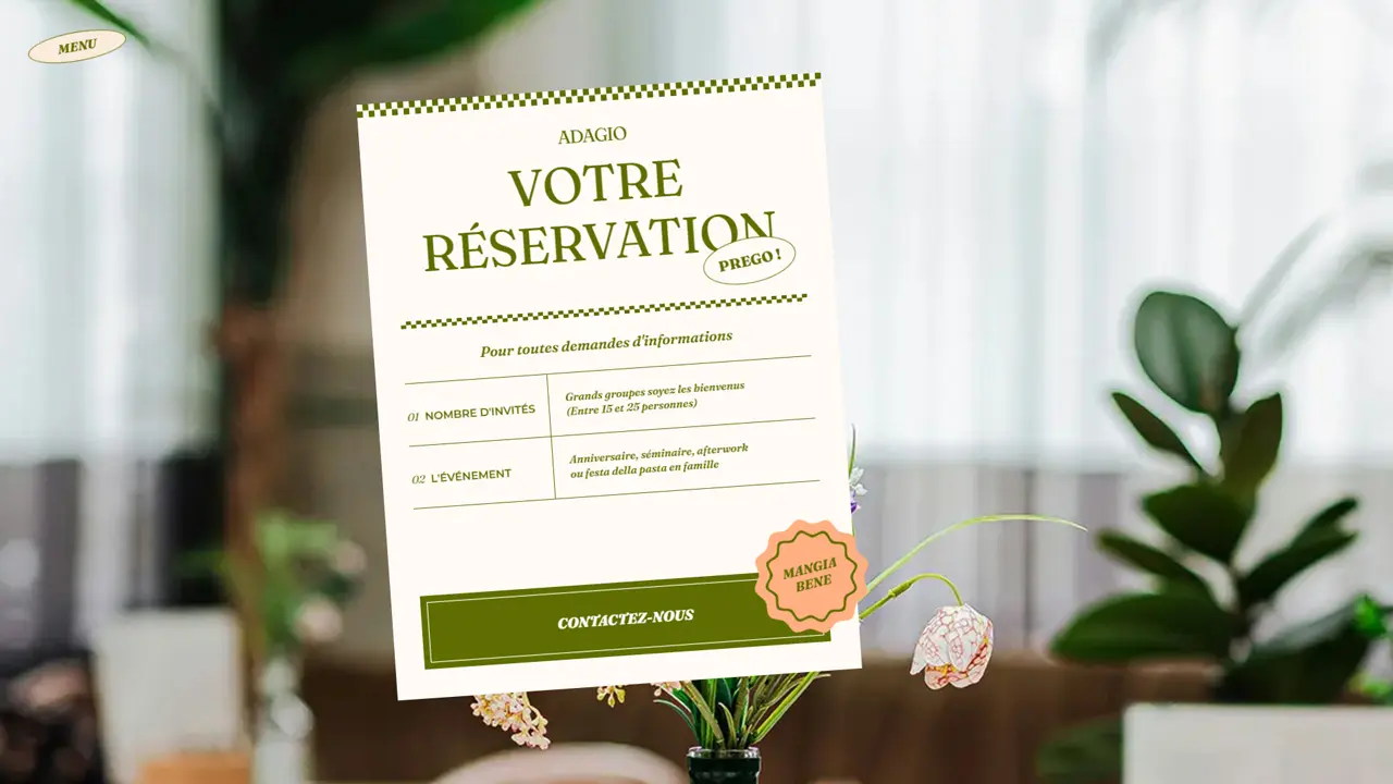 Adagio, véritable ode à la gastronomie, incarne l’art de vivre à l’italienne dans une ambiance chaleureuse et authentique. Avec son menu riche et ensoleillé, il célèbre la tradition culinaire tout en l’enrichissant d’une touche régionale. Cependant, malgré son atmosphère accueillante et sa réputation grandissante, l’identité numérique d’Adagio peinait à capturer toute la générosité et le raffinement de l’expérience offerte sur place. Le site web devait se réinventer pour refléter pleinement l’âme de cette trattoria contemporaine et devenir une vitrine captivante pour les amateurs de bonne cuisine et de moments partagés.